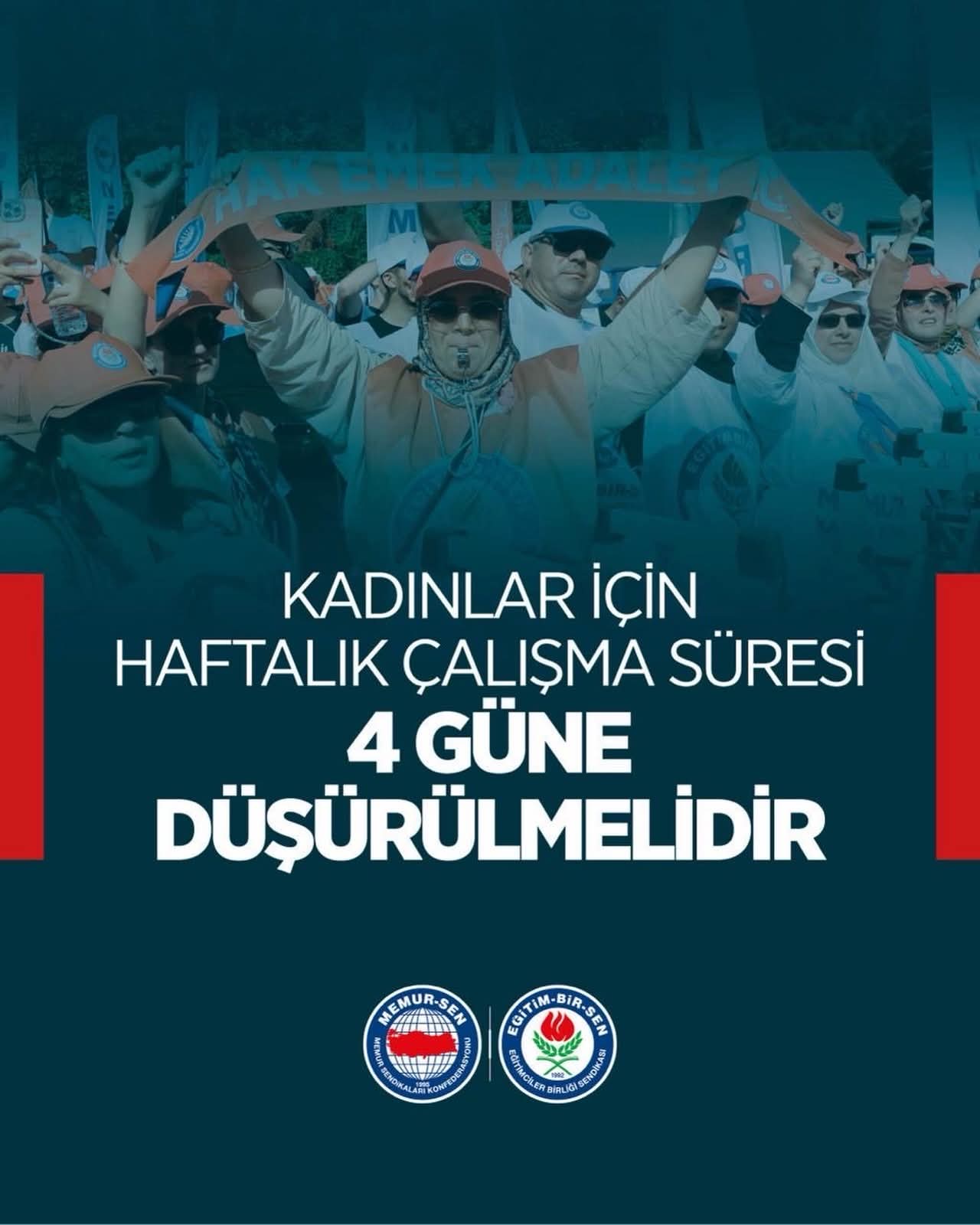 📌 Kadın kamu görevlileri için haftalık çalışma süresi 32 saate, çalışma günü 4’e düşürülmelidir.