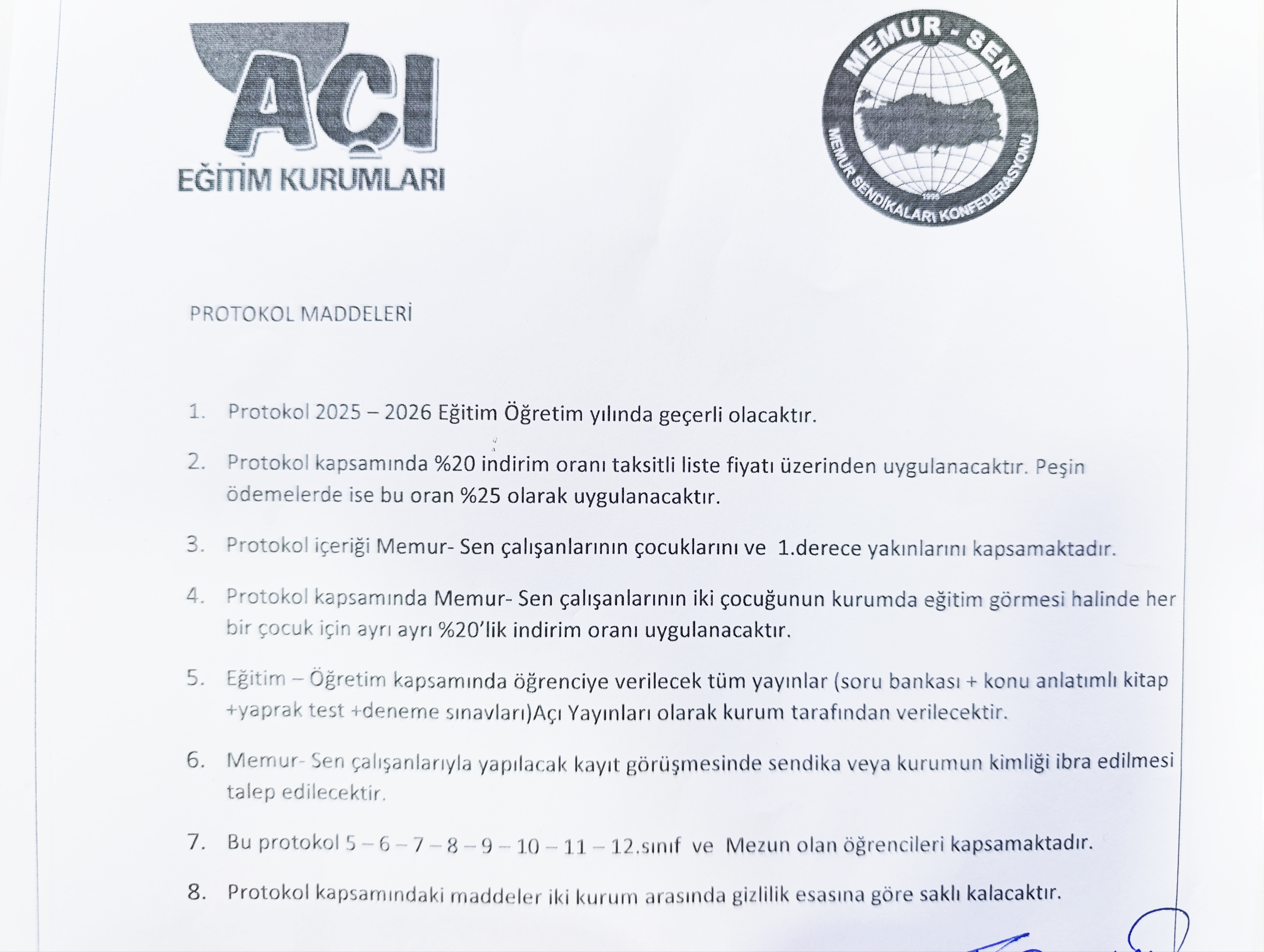 Zonguldak Açı Eğitim Kurumları ile indirim anlaşması imzalanmıştır. Camiamıza hayırlı olsun.