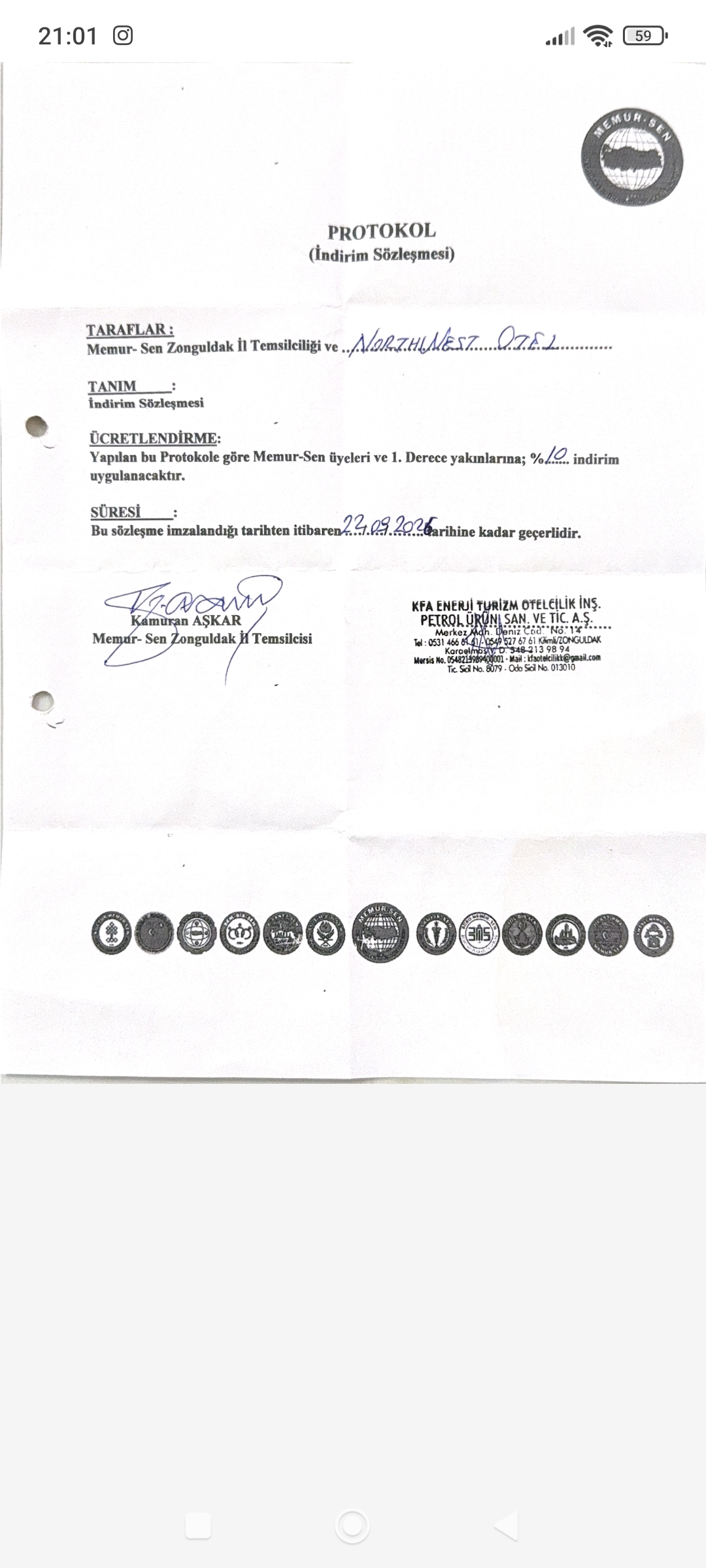 Kilimli ilçemizde faaliyet geçen “NORTHWEST OTEL” ile MEMUR SEN İl Temsilciliğimiz arasında üyelerimize yönelik indirim anlaşması imzalandı. Anlaşmaya göre MEMUR SEN üyeleri ve birinci derece yakınları hotel hizmetlerinden %10 indirimli faydalanacak.Hayırlı olsun.