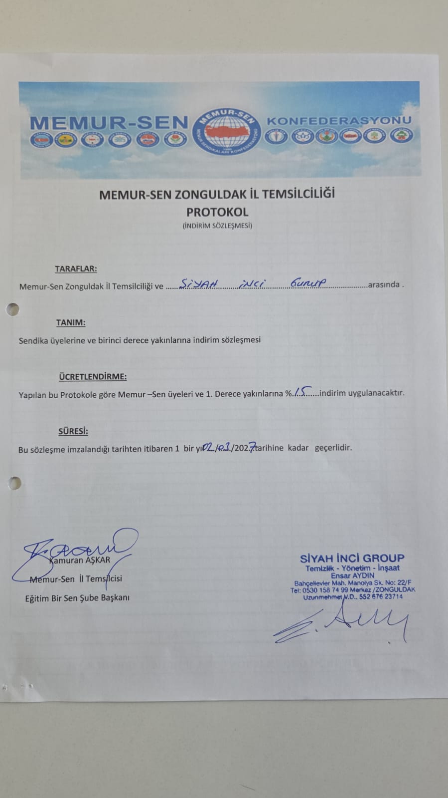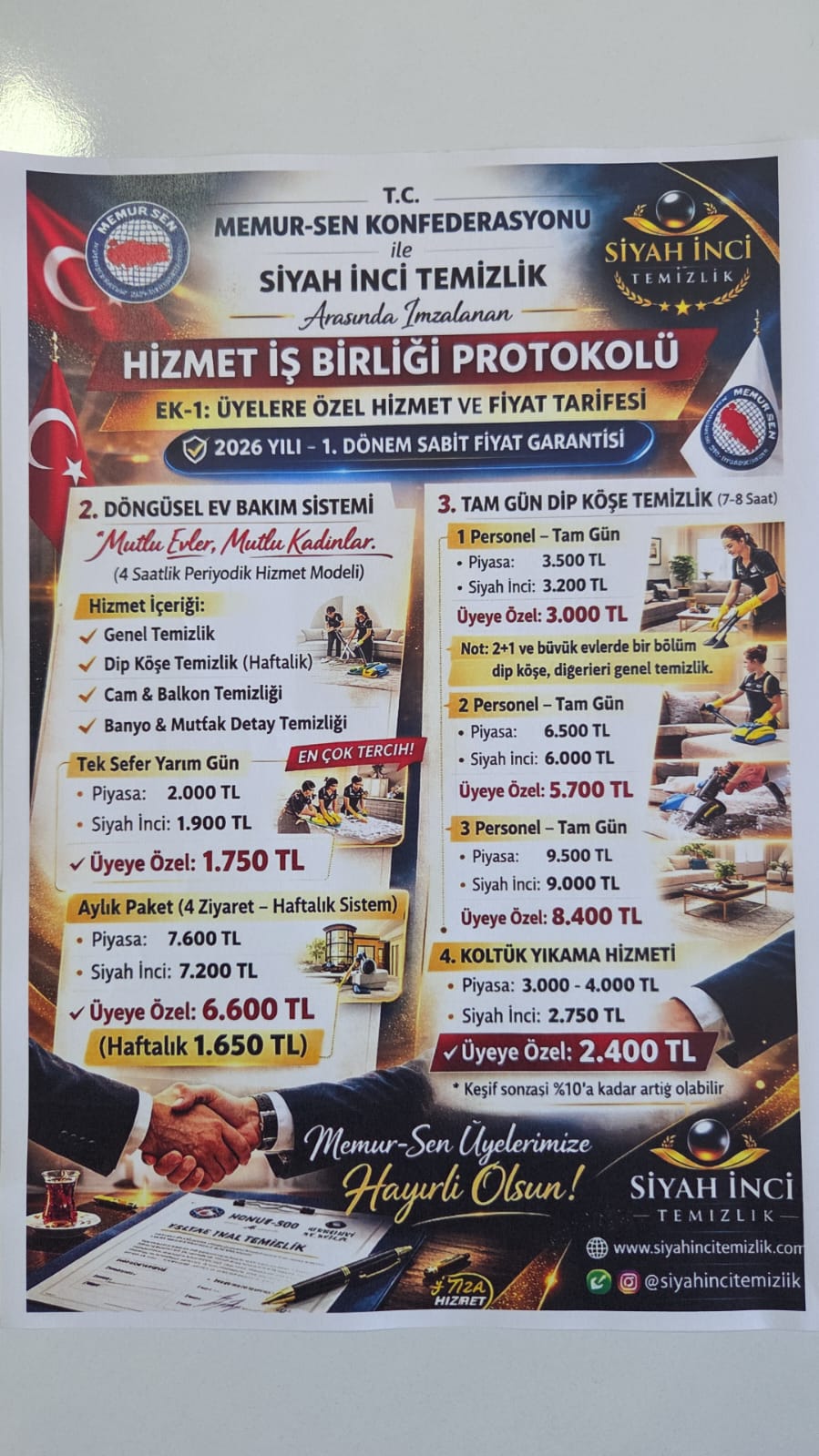Sendikamız ve Siyah İnci Group arasında indirim anlaşması imzalandı. Ev temizliği ve koltuk temizliğinde Memur Sen üyelerine ekstra indirim yapılacaktır.yapılacak indirim oranları ekte sunulmuştur.